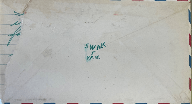 By the way, didn’t you get another package besides the cookies? Let’s make the letter a little longer. I better go now and help Momie get dinner. I love you much very much, and I will write again tomorrow.