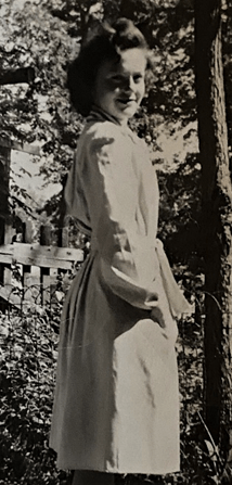 Well here I am again and I just arrived home from town. I bought two new shirts, a sweater, lingerie, ankle socks and hankies, and Momie bought me a real pretty trench coat. You will see me in it every minute. We sure had fun and oh yes, I bought labels for my luggage. I wish Daddie could have be here to see me now on the way downtown, I took all of my slacks and my blue suit. I’ll be wearing anything and everything to work from now on.