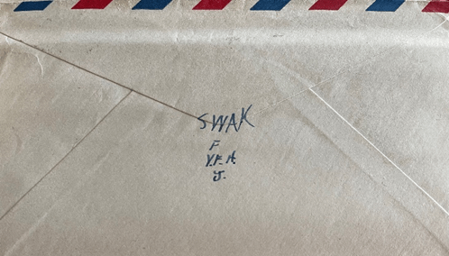 Well Honey, it’s getting to the time where I must start to dress for work, so better close. Sure hope nothing is wrong out there. Be careful and write me all about your weekend. Maybe you took a trip, huh, and didn’t write. I love you very much and I miss you terribly, especially when I don’t hear.