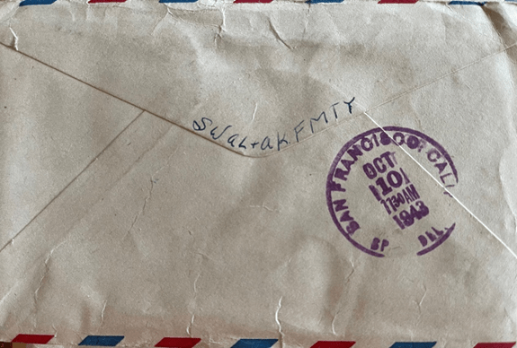 There isn’t any news, so I don’t know what to write about. I have a letter to answer. The weather is foggy and damp again – you can hear the fog horns in the Bay and channel. The weather would probably be nice over in the mountains. Yes, it would be nice to take a ride over on Junior (Harry James and Frank Sinatra “All or Nothing At All). I will try to get up to get that belt for you Saturday. (The store isn’t spelled Imporium, it is Emporium). Yes, I got that laundry finished – finally. I did write Mom. I also wrote one last night.