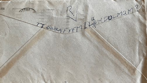 Well Honey, I’m still at a loss as to what to write about, so I guess I’ll close. Will try again tomorrow. Love and be careful. “Your” Darlin & F.W. Janie