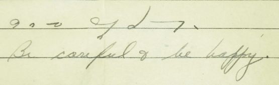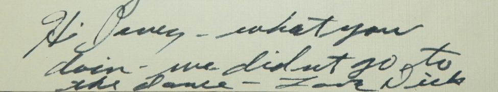 There isn’t any news as for me writing this afternoon, but I thought I’d better drop you a note tonight so you could get a letter Thursday. O.K? O.K!