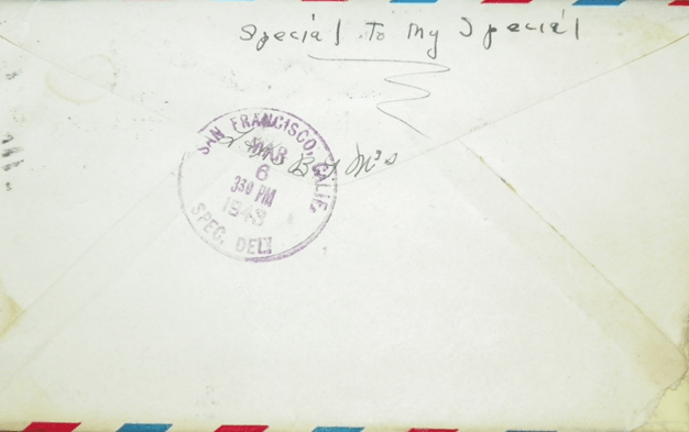 (Fun Fact : SPECIAL was Special Delivery. A few extra cents and letters typically went from San Francisco to Des Moines or visa versa in 1-2 days. They were then delivered immediately to the addressee instead of being held for regular delivery the next delivery day)