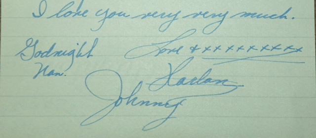 Harlan or Johnny? Mom called him Harlan for many years, partly because Dad’s father’s name was John and he also went by Johnie. When Dad went to San Francisco, everyone called him Johnny. We’re not sure when Mom agreed to call Dad John or Johnny.