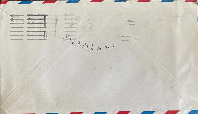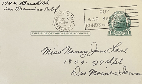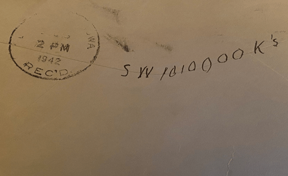 Well here I am again and only this time it’s something special. Guess what? I’m writing from work on the back of an inspection sheet. I am back in the primer room and Marian is on the floor and as I had a little time, but it would be cute to drop you a line. O.K? O.K! Marian is back now and is writing her boyfriend Wesley. He is in the Navy Air Corps stationed in Oakland California and I believe I told you before, but if he is still there in August she is coming out with me. Excuse me honey but I have to go fill trays –