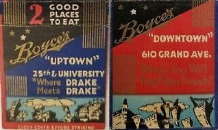 (Fun Fact: Boyce’s Sweet Shop, at 2427 University, was first listed in the city directory in 1929. The owner, Floyd D. Boyce, then acquired the Liberty Grill at 610 Grand, remodeled and opened it in 1934 a Boyce Downtown. In 1936 he opened Boyce’s Uptown, located at 4119 University. His brothers, Guy, and Roland, joined him and helped to manage these ventures. They had previous experience as their father had a confectionary store in Creston. Guy was once arrested for operating gambling at the sweet shop because pf pinball machine payouts to students.
