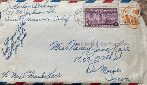 I just finished eating breakfast, picking up my laundry and some shaving soap. Your Special came while I was eating, it sure is a swell one. It didn’t leave D.M. until 7 PM Saturday. If you put it in the mail Friday night, I don’t see why it should leave so late Saturday.