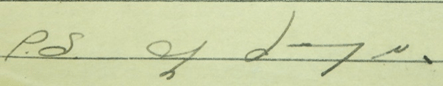 Well Sweets, this is the last sheet of paper, so better close and go to bed. Will write tomorrow. Be careful honey, for T & T’s sake.