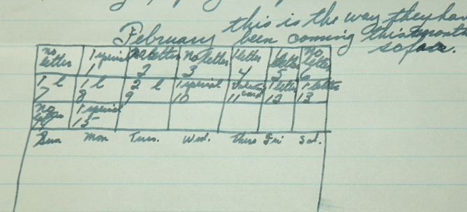 Your Special is late again. I don’t know why it hasn’t come yet. It should be here in the morning, then I will finish this letter then.