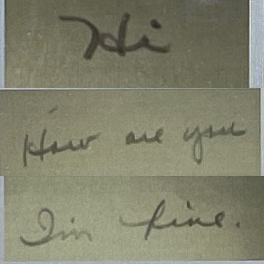 Daddy has just gone and before he left, he said for me to say how ‘Hello’ and keep your chin up. And Momie sends her love.