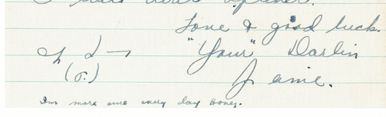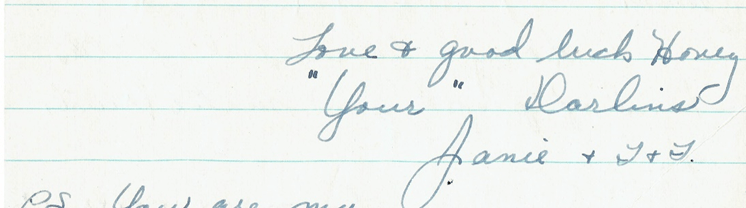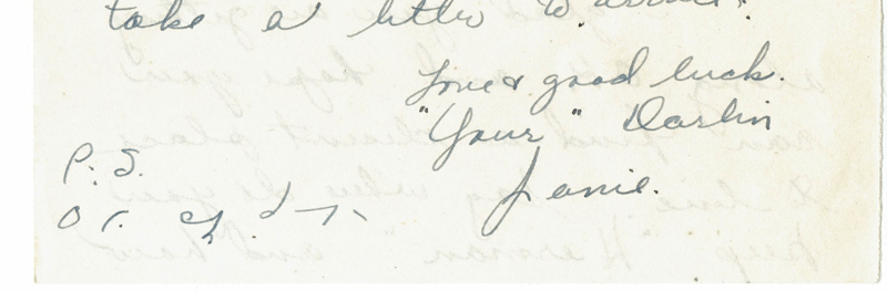 Love and good luck. Your darlin’ Janie.