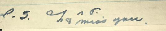 P.S. Be sure and write when you are going to call Love.